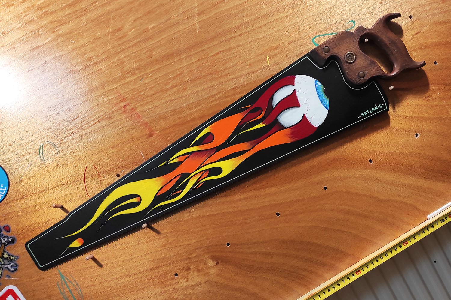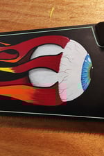 Ζωγραφισμένο με ακρυλικά χρώματα και εμπνευσμένο απο το "Flying Eye" του Von Dutch και τις Harley Davidson φλόγες, έτοιμο να διακοσμήσει οποιονδήποτε χώρο με Rock ή Vintage αισθητική.